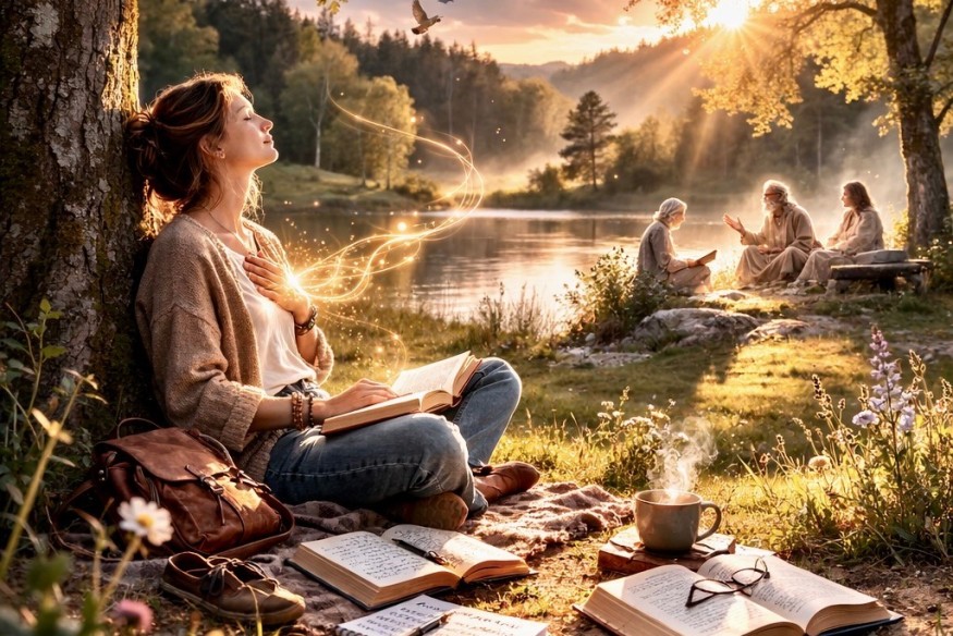 La solitude intérieure, même la plus extrême, n’est qu’un effet de l’ignorance. En réalité nous ne sommes jamais seuls. Tous les textes sacrés le disent, tous les sages l’attestent. Écoutons ces voix anciennes, laissons-les résonner en nous. Faisons confiance à la voix du sage intérieur qui dit : « Tu es Être – Conscience – Félicité ». Et si cette voix n’est d’abord qu’un souffle, laissons-la grandir, amplifions-la, toujours plus claire, toujours plus forte. « Tu es Être – Conscience – Félicité »......