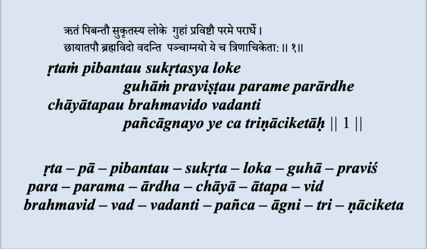 Le jīvātman, l’âme individuelle, et le paramātman qui est le brahman suprême, résident tous les deux dans guhā, la grotte du cœur. Et tous deux expérimentent le résultat des actions l’un comme acteur, l’autre comme témoin.