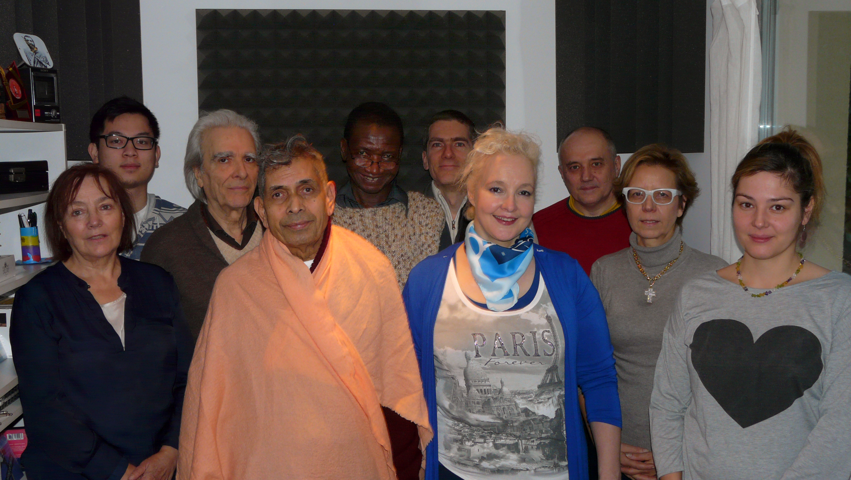 10 janvier 2015 : Swami Veetamohananda, Tara (d'art et d'astrologie), Shivani (15mn d'entretien), Sarada (les enfants du gospel), Mohini (après le bain), Ramji (15mn d'entretien), Jean-Michel (les entretiens de Sri Ramakrishna), Olivier (leçon des choses), Isha (15mn d'entretien), Naren (ingé son) et Kevin (invité spécial).